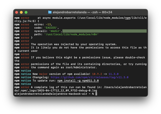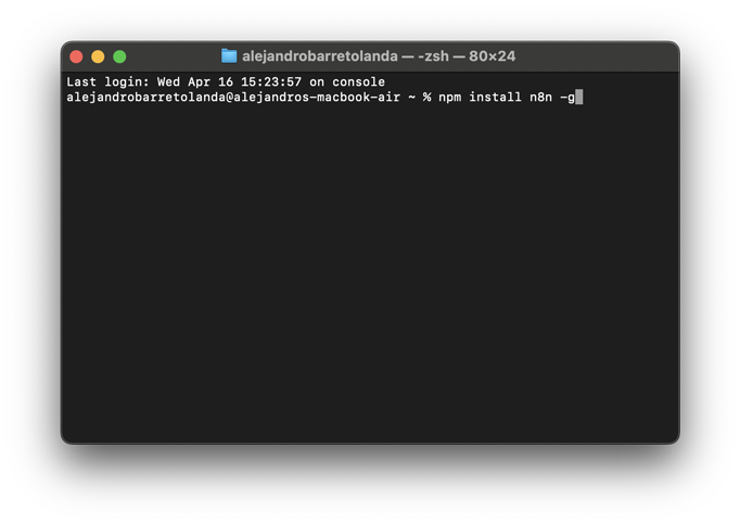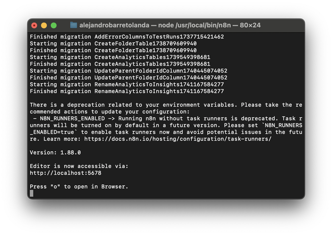 After this write the command «N8N», press enter and then open It localhost with «o». Use a browser that is not Safari, otherwise it won’t open.
