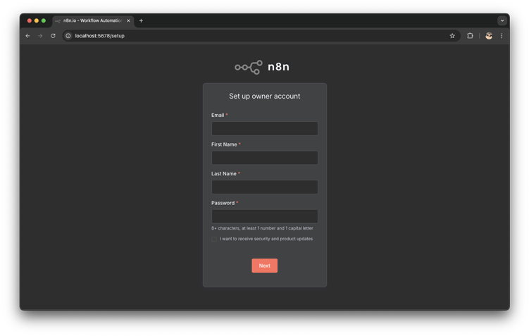 It will provide a local URL (usually http://localhost:5678) where you can access the N8N dashboard in your browser.