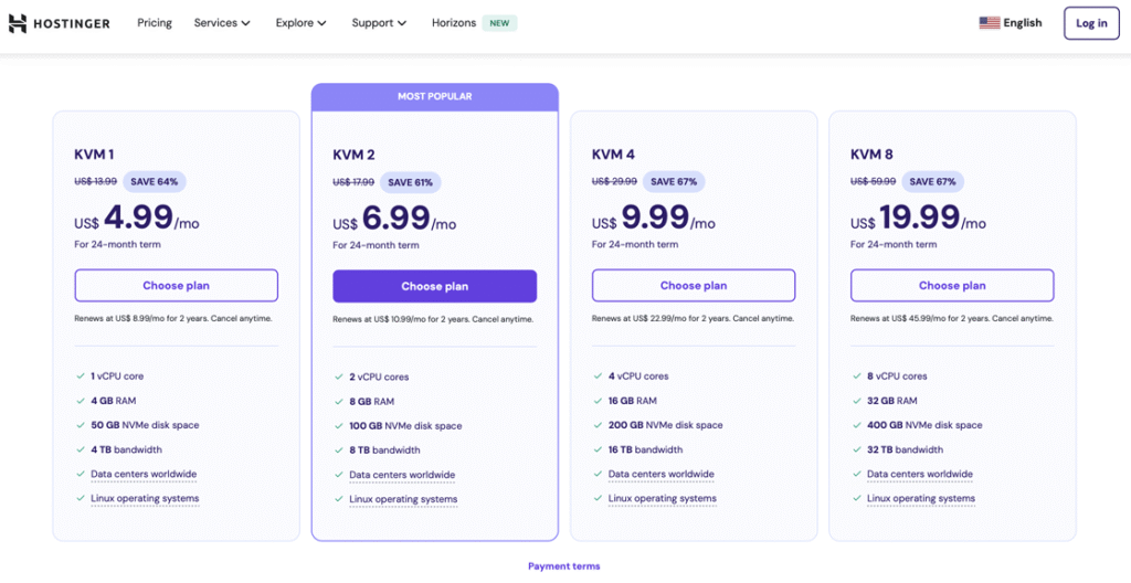 For this blog, we’re actually using Hostinger to host both our website and our N8N instance! Hostinger offers affordable, high-performance KVM servers that are perfect for running N8N.